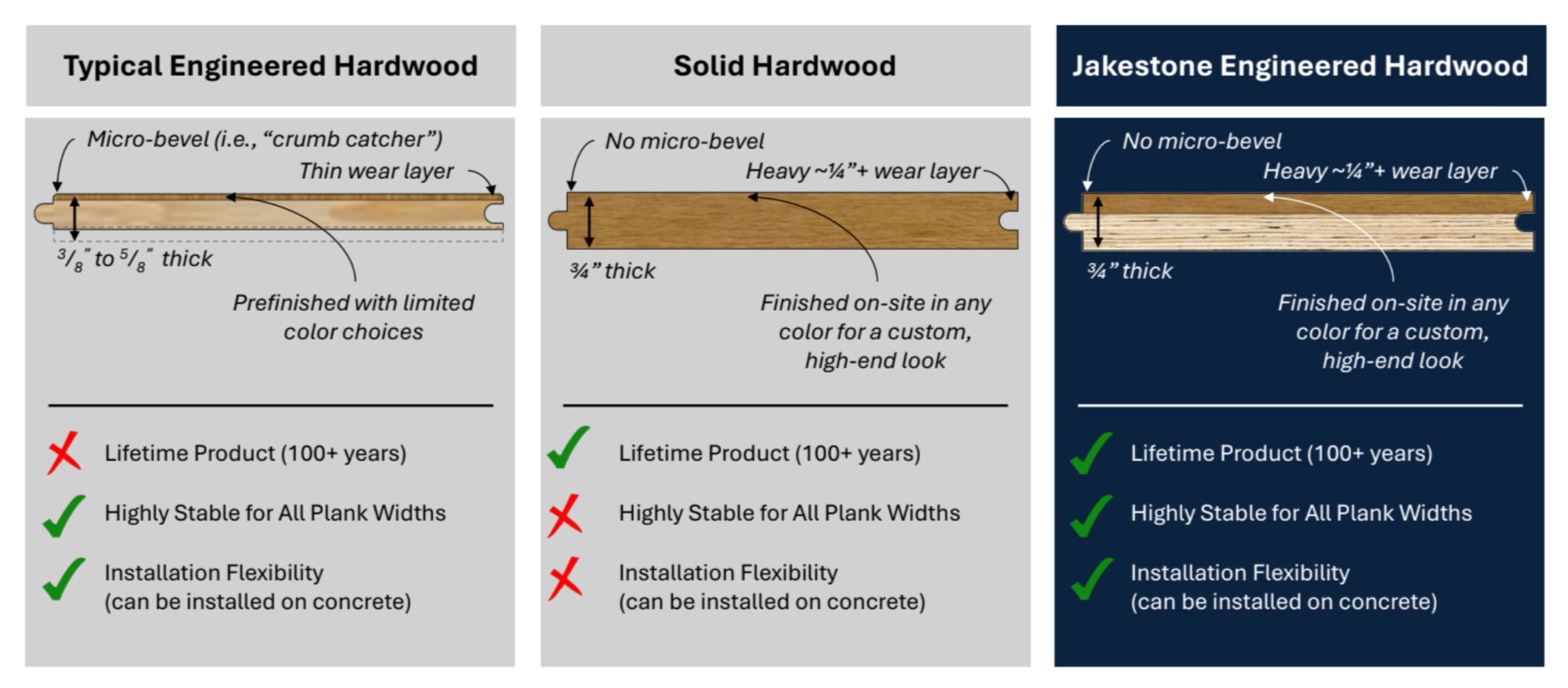 At Jakestone, we provide a full-service experience from design to installation, ensuring every floor is crafted to elevate the space it lives in. Whether you're a homeowner, builder, or designer, we’re here to help bring your vision to life with quality, care, and craftsmanship.